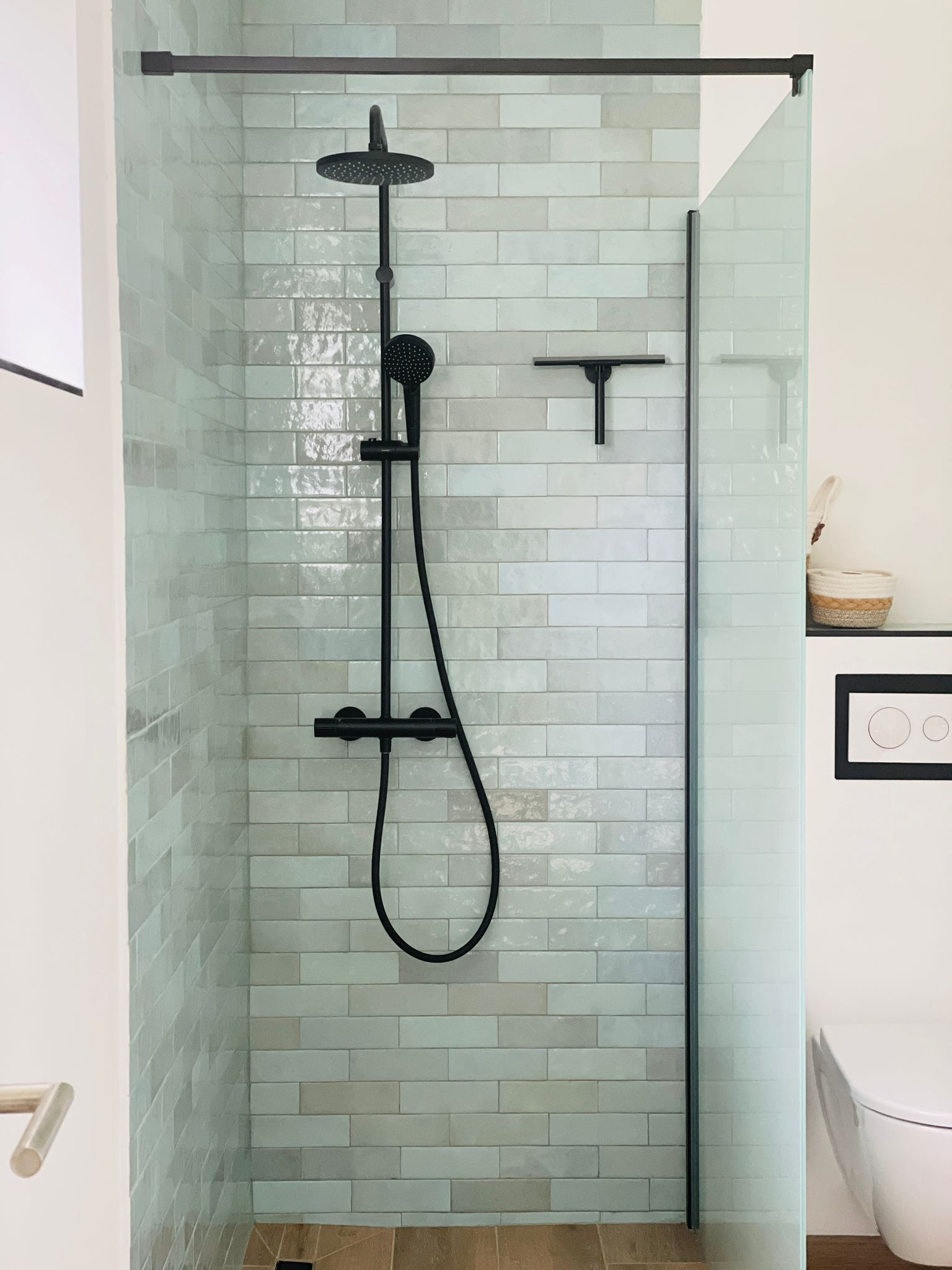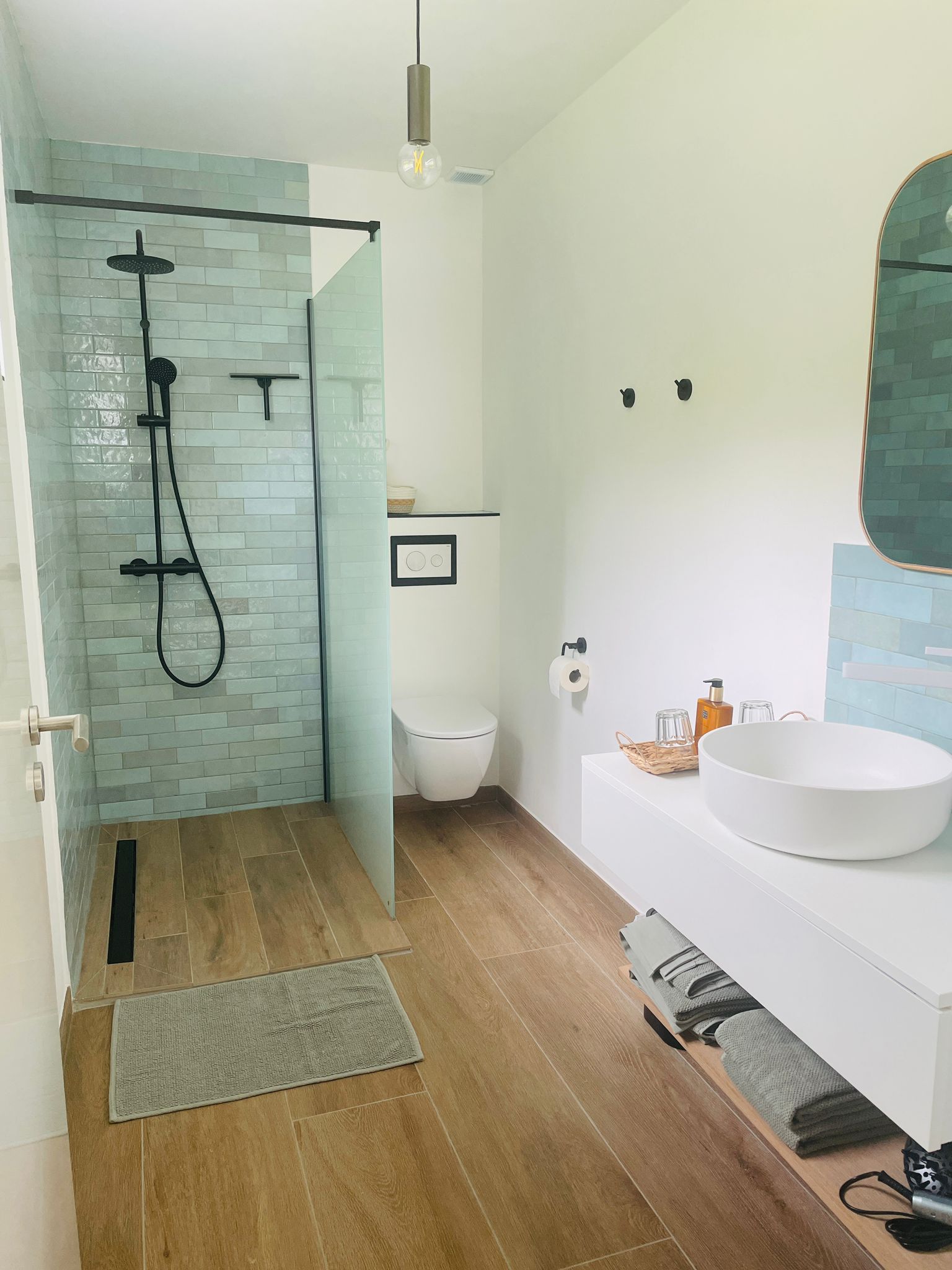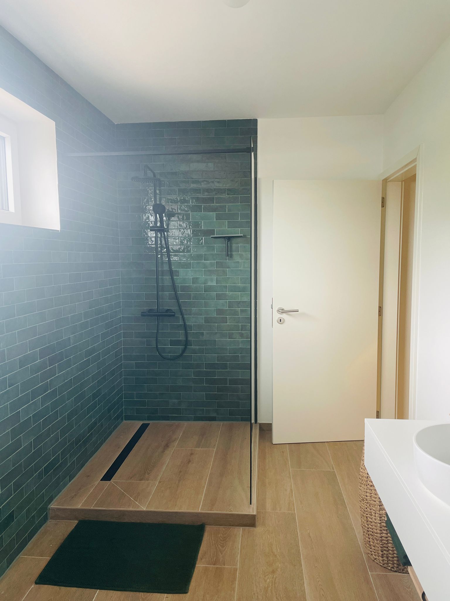 - Aanpalende badkamer met douche, toilet en lavabo