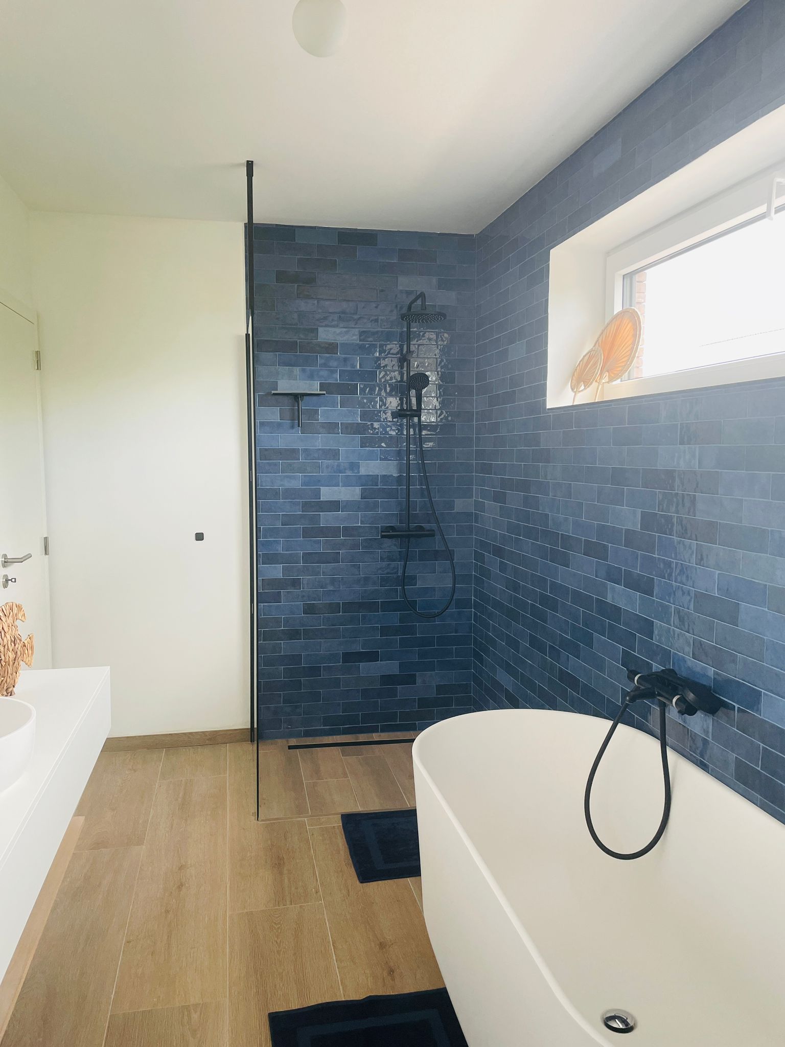 - Badkamer op de hal met douche, bad, toilet en lavabo