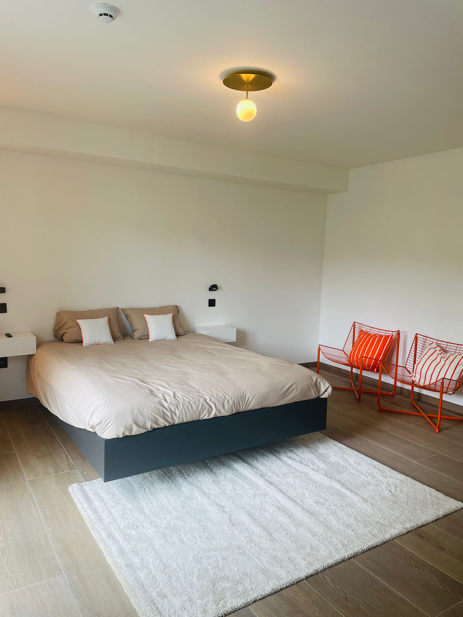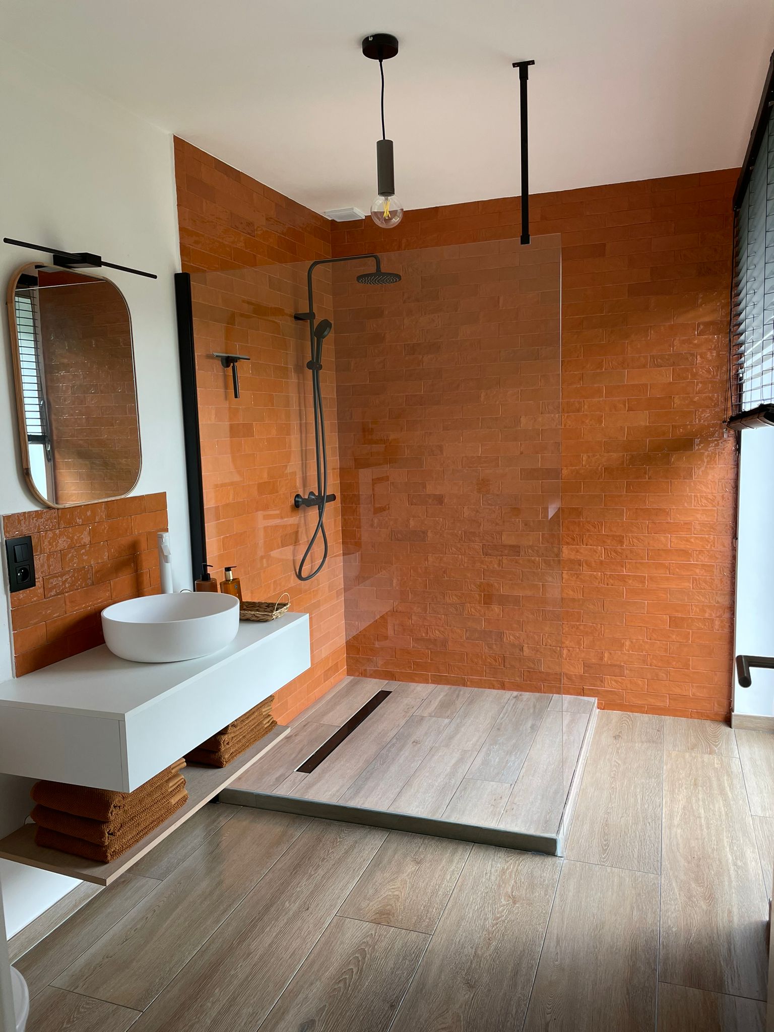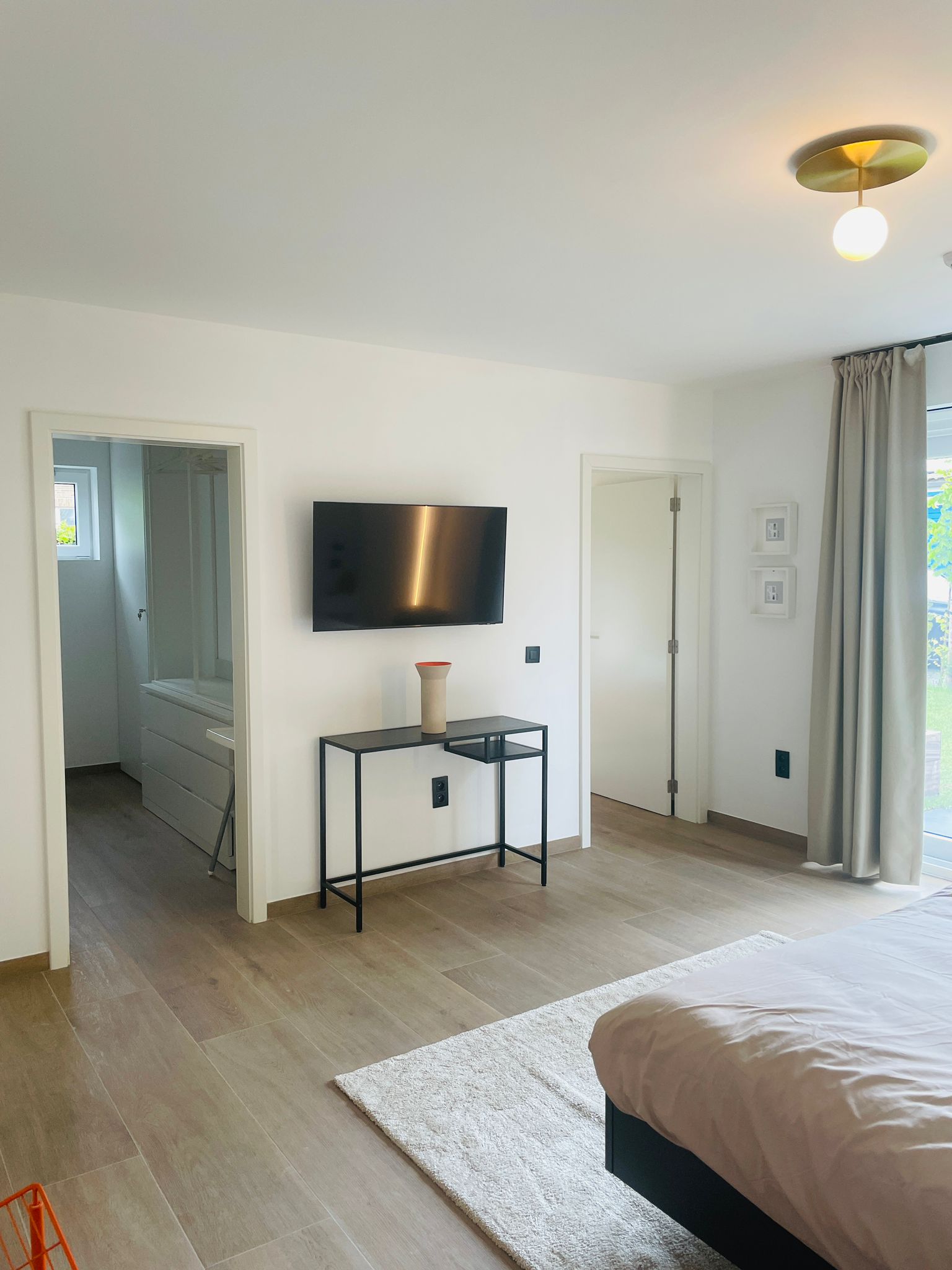 • Aanpalende badkamer met douche, toilet en lavabo